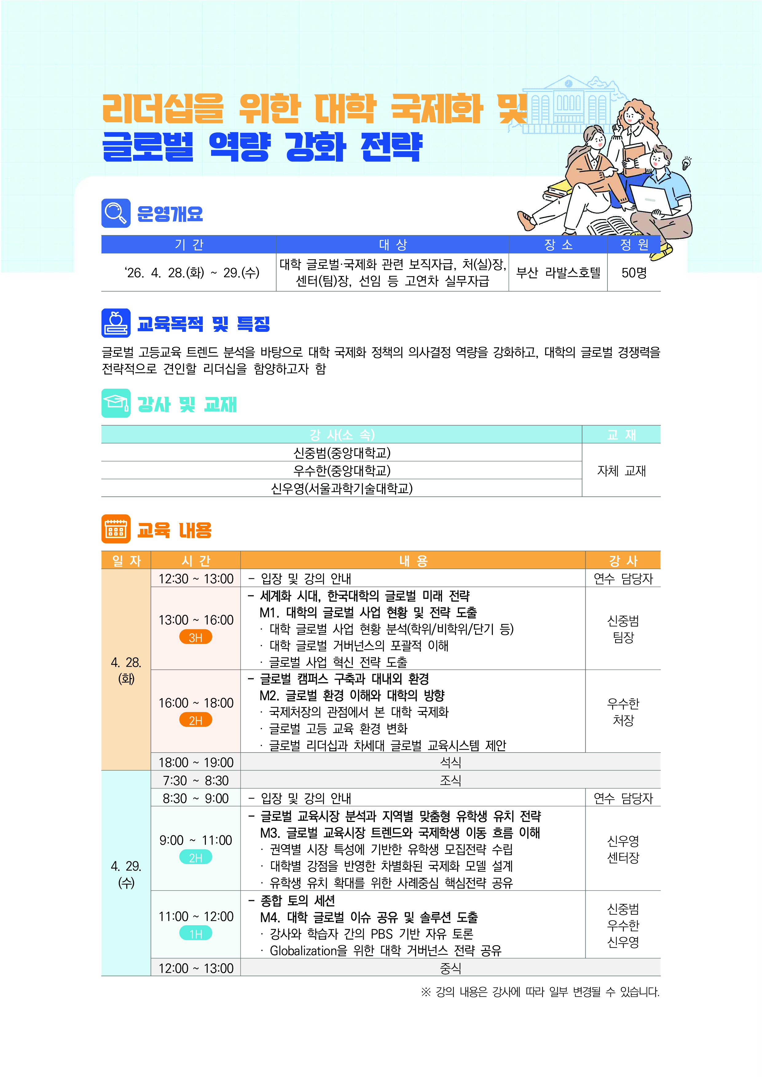 「리더십을 위한 대학 국제화 및 글로벌 역량 강화 전략」 연수 신청 재안내